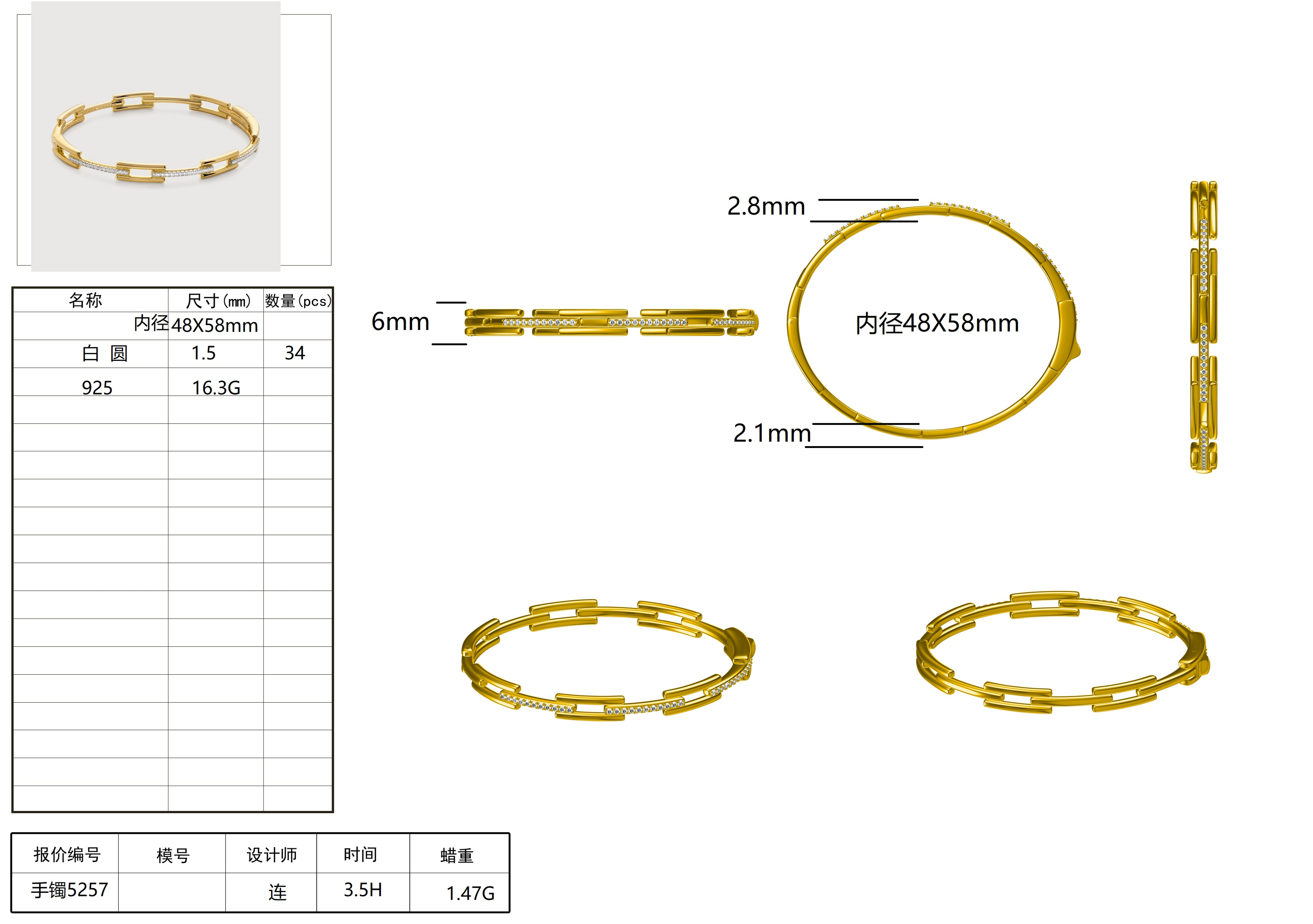 • Bangle Width (at link segments): 6 mm (0.24 inch)