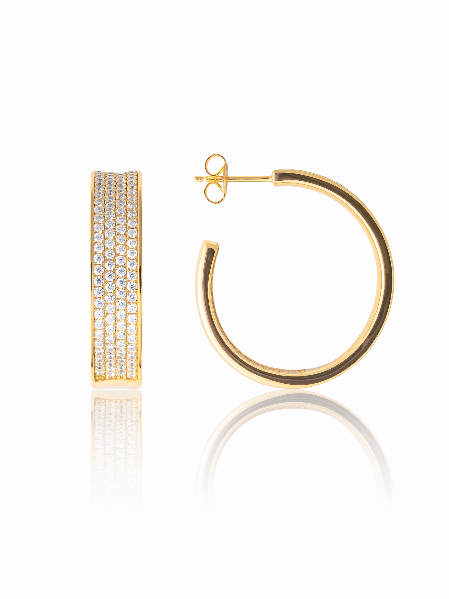Our artisans hand-set hundreds of pavé stones across smooth curves of 18K gold vermeil — a luminous expression of modern sophistication.