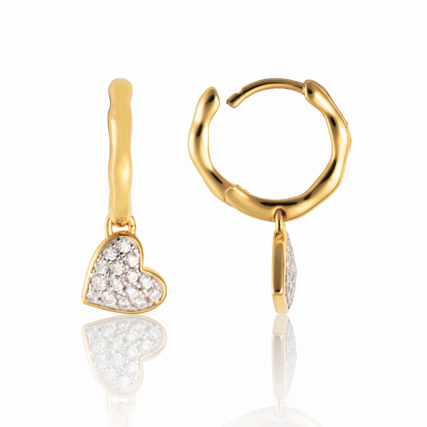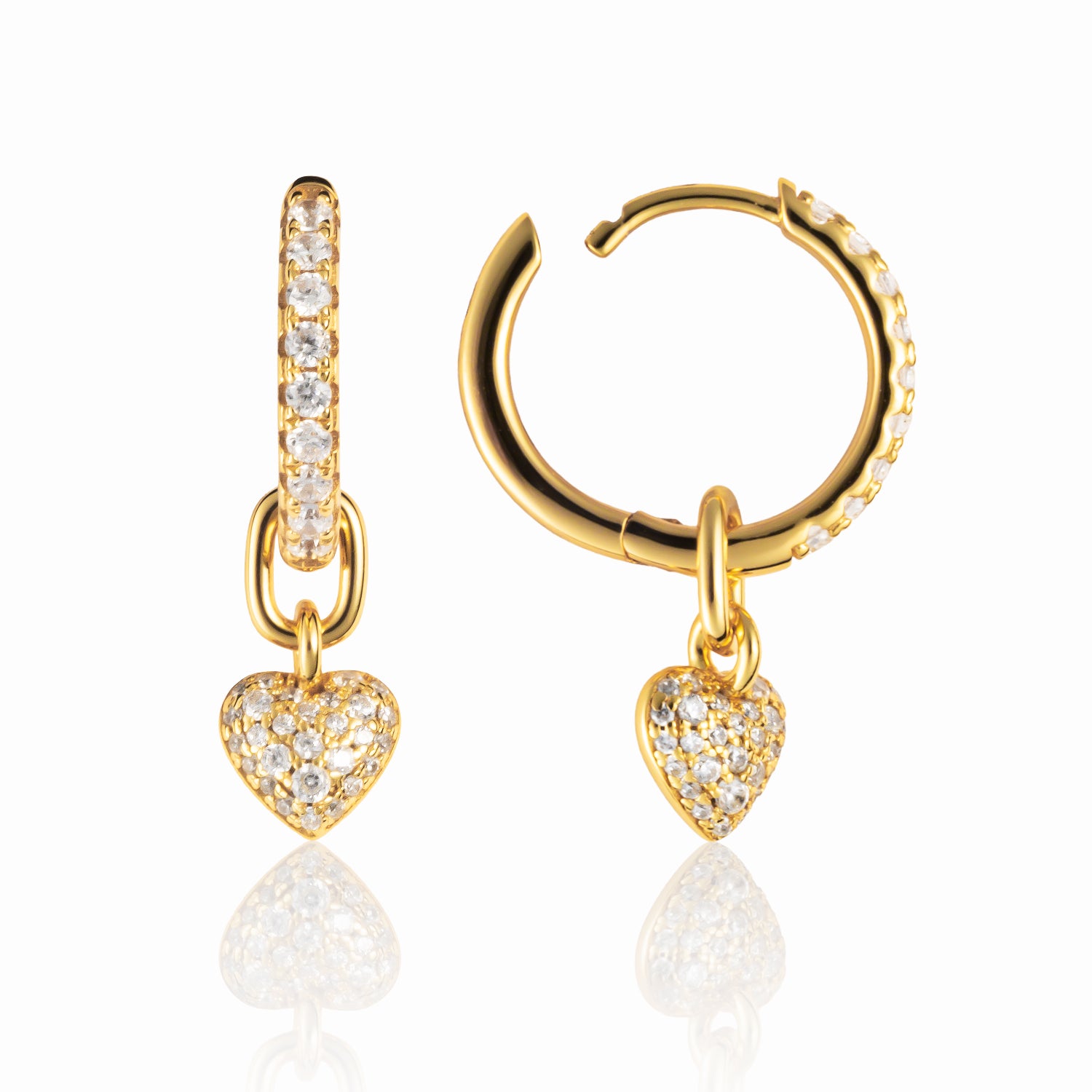 Rebaneó – Pavé Heart Drop Earrings in 18K Gold Vermeil
