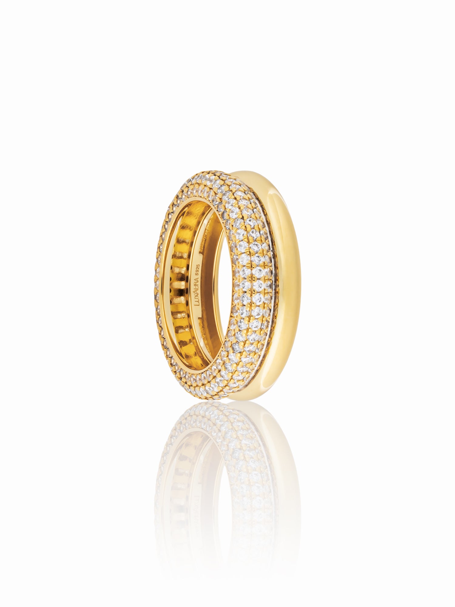Our artisans hand-set hundreds of pavé stones across smooth curves of 18K gold vermeil — a luminous expression of modern sophistication.